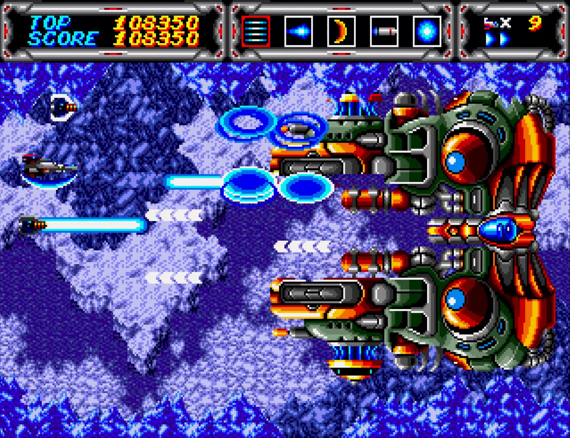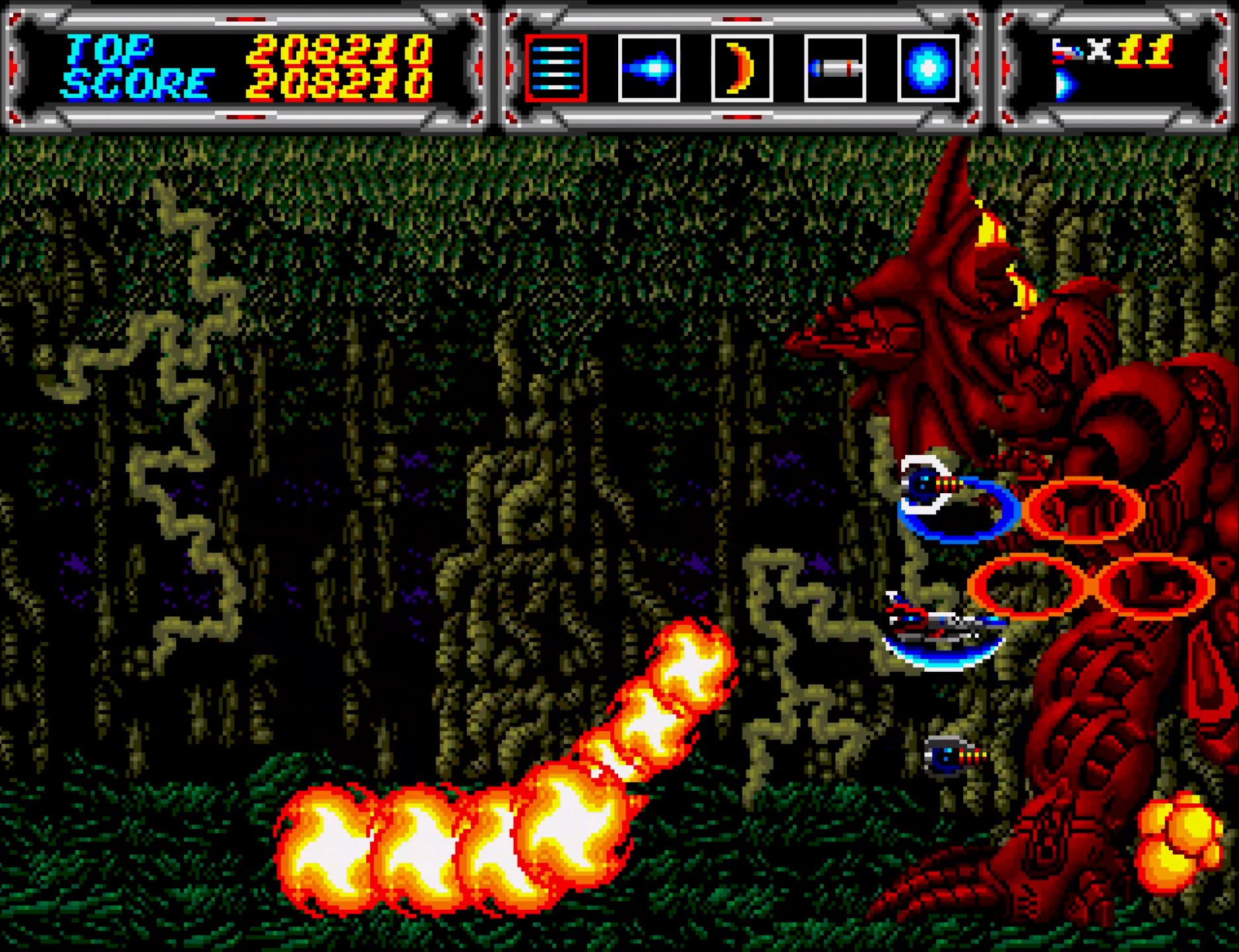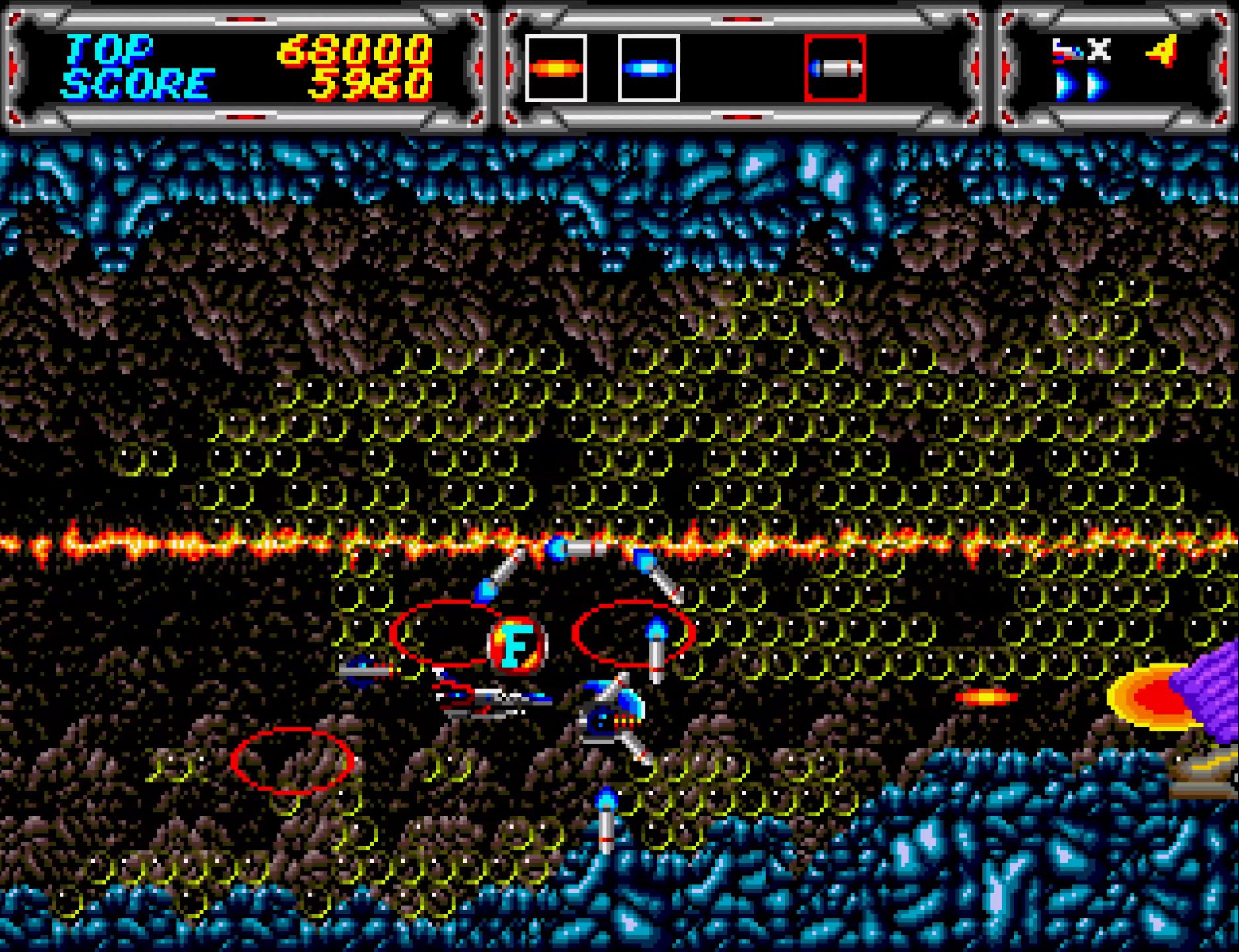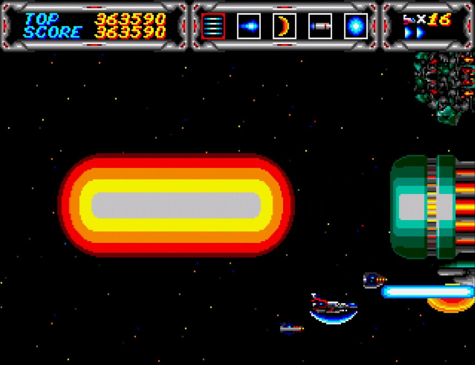 サンダーフォースIIIのROMは各国版で違いはないのだが、本体がJP国内用か海外用かで敵の堅さが変わるのもあって、ここのボスとか強気で最初からセーバー使えて気持ちいい。